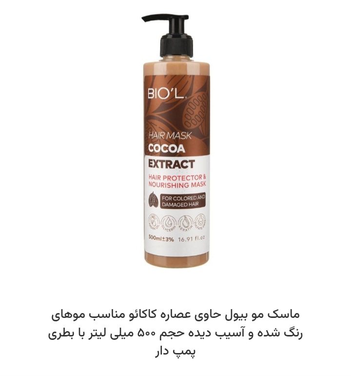 ماسک مو حاوی عصاره کاکائو بیول 500 میل