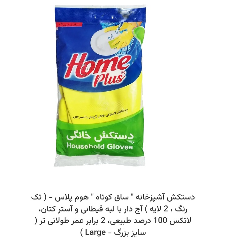 ناموجوددستکش ظرفشویی ساق کوتاه هوم پلاس سایز بزرگ