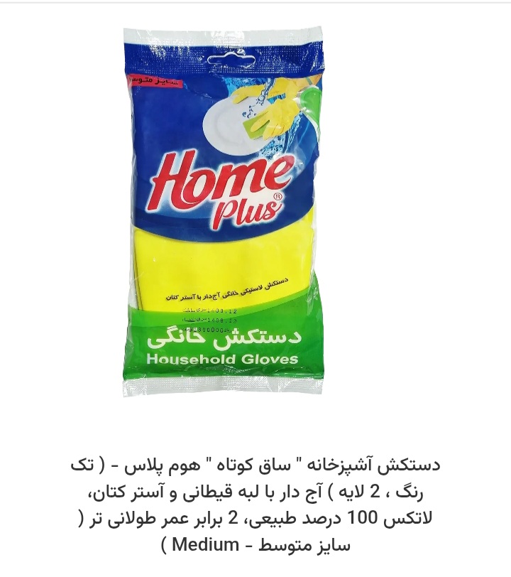 ناموجوددستکش ظرفشویی ساق کوتاه هوم پلاس سایز متوسط