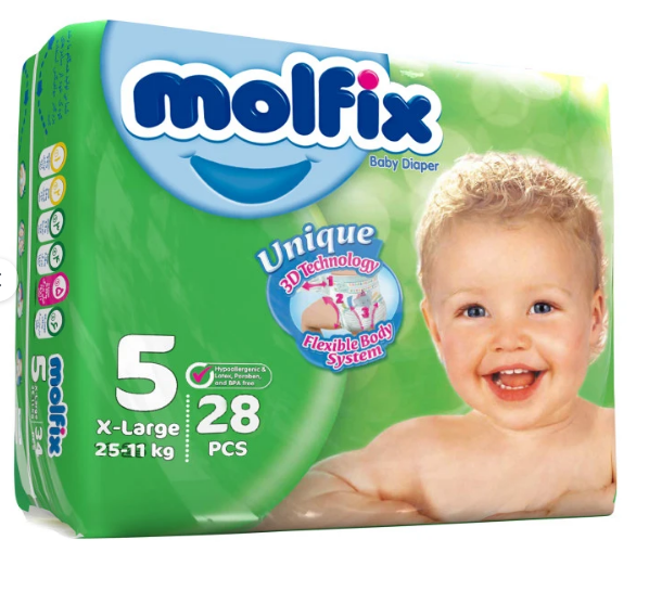 پوشک بچه مولفیکس کد 001 سایز 5 مجموعه 28 عددی